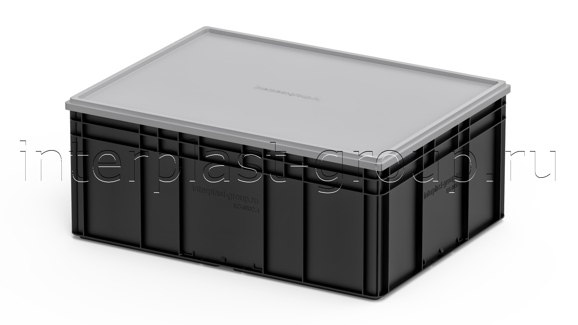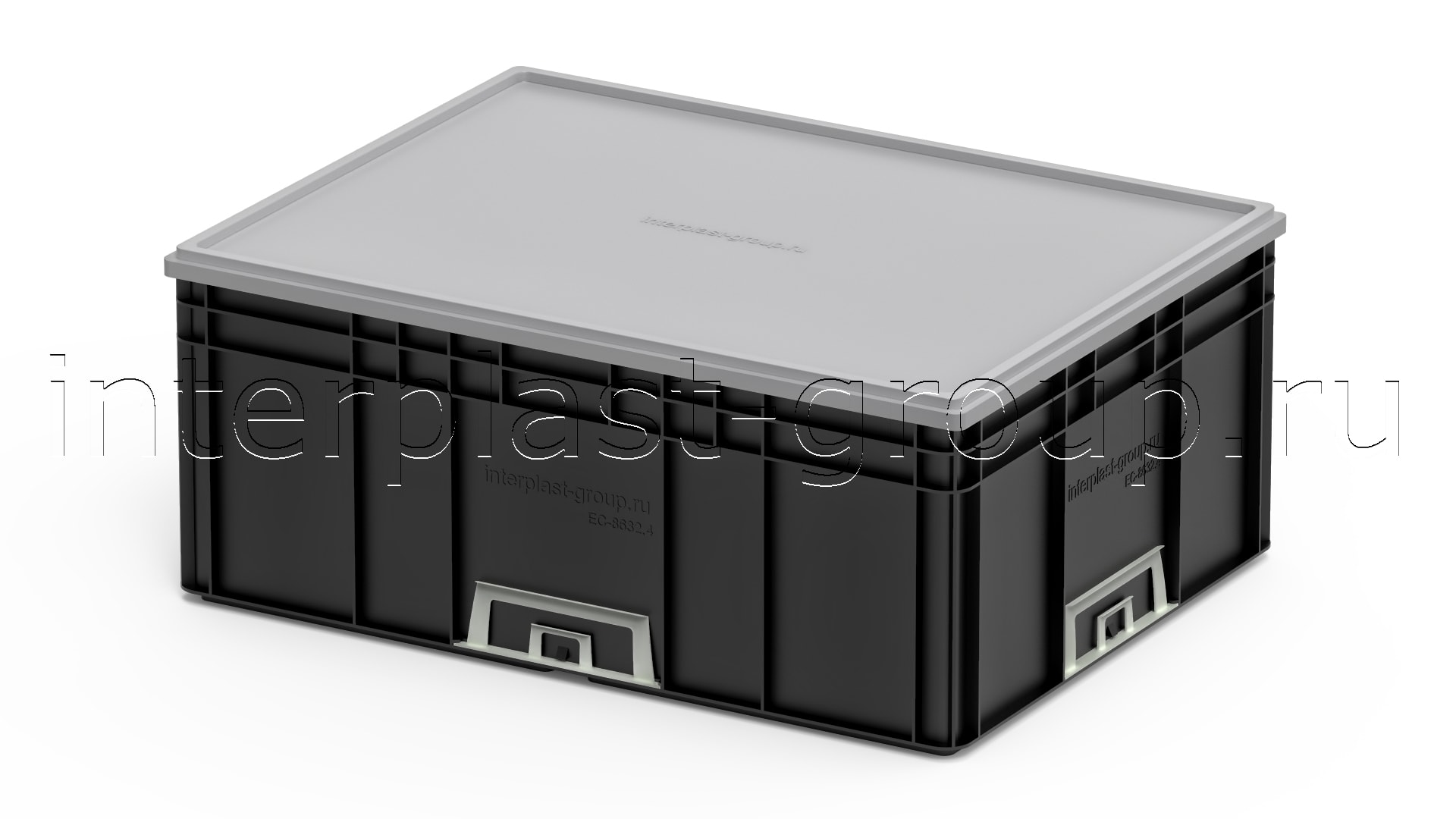 Евроконтейнер закрытые ручки/усиленное дно (черный), 800x600x320 мм