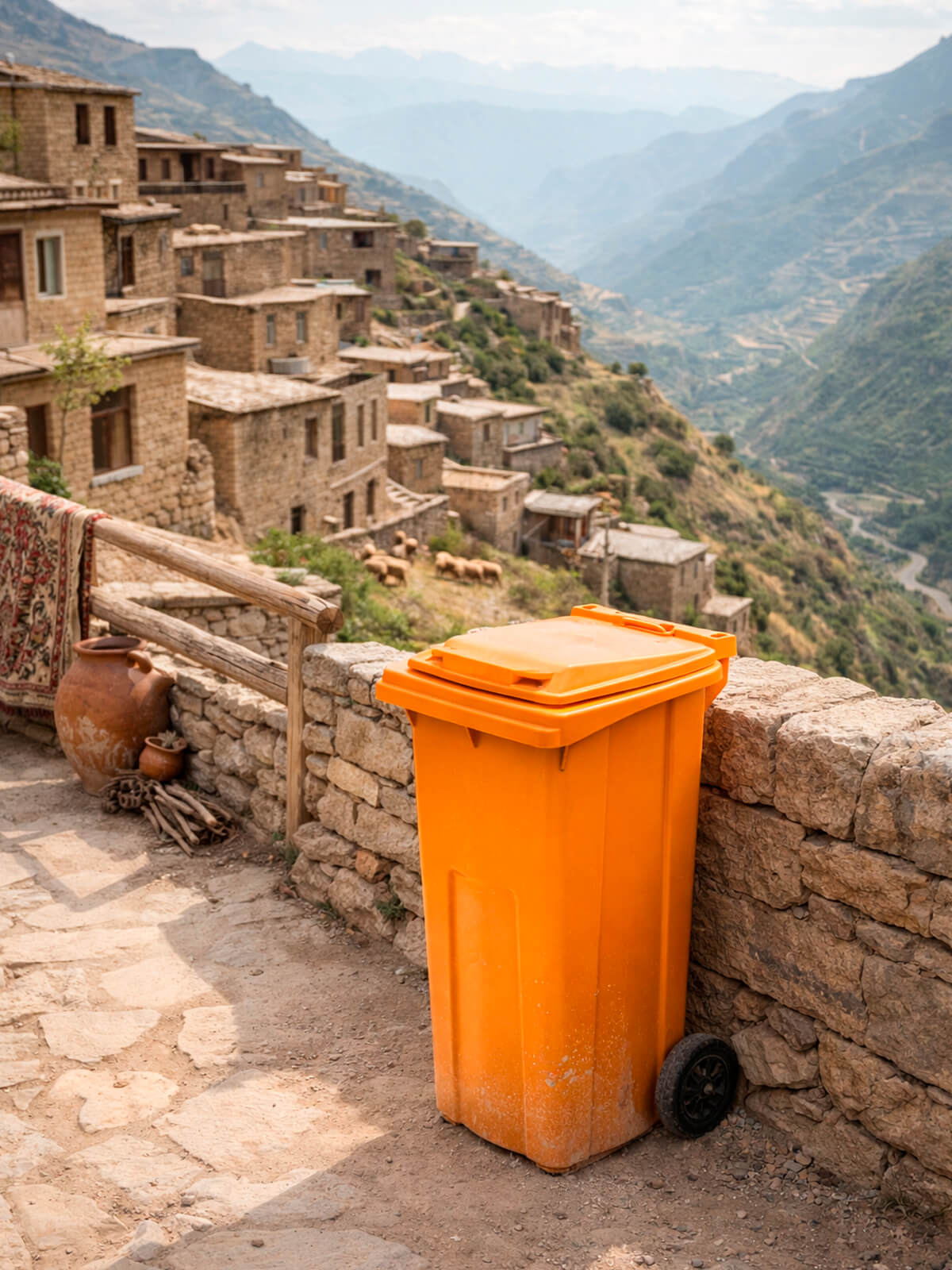 Контейнер для мусора 120 л на колёсах с крышкой, оранжевый — повышенная видимость и системный контроль отходов