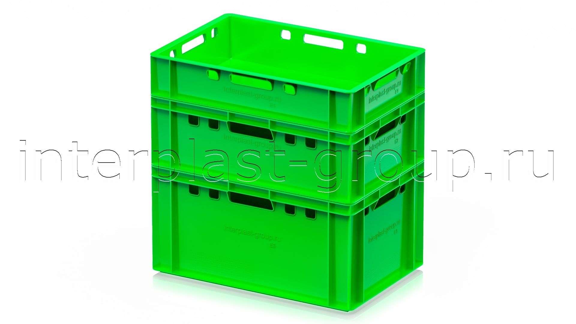 Ящик для мяса Е3 это третий по размеру в линейке мясных ящиков. Разработан специально для использования в мясной промышленности. Отлично штабелируется и собирается в единый сет со всеми ящиками серии. Изготовлен из первичного полиэтилена, и адаптирован для хранения в холодильных и морозильных камерах.