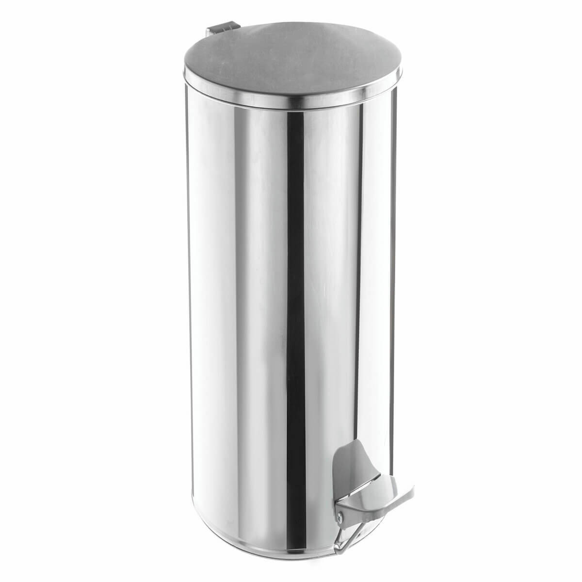 Ведро для мусора с педалью, усиленное, Титан, 30 л, кольцо под мешок, нержавеющая сталь, хром